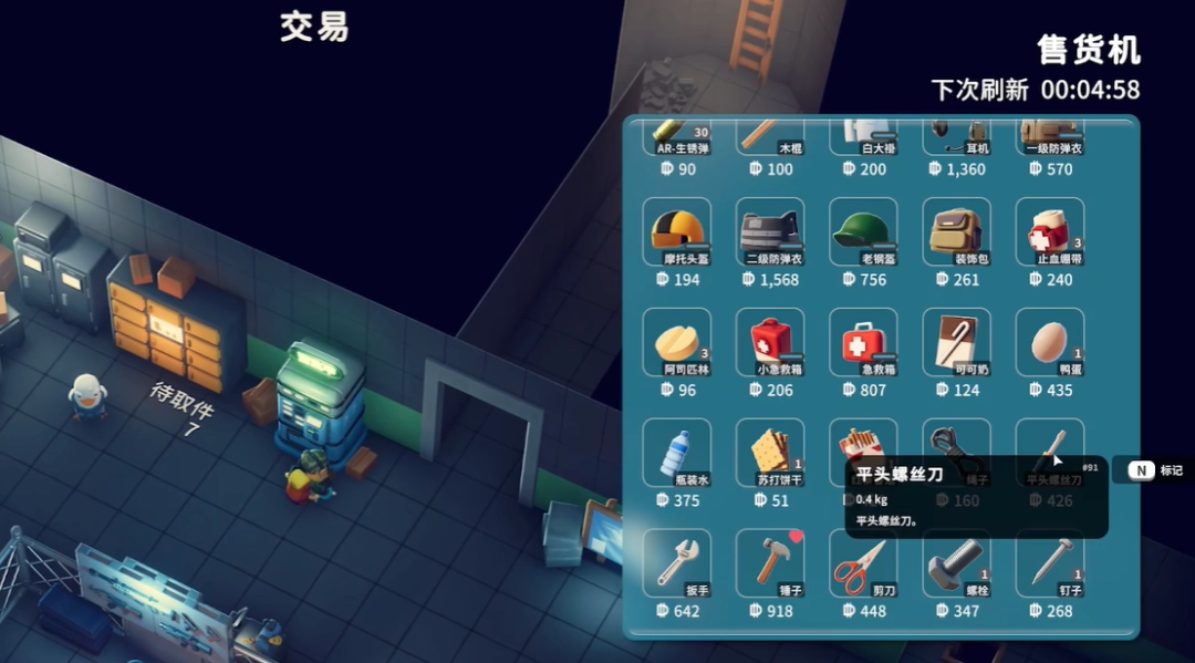 信号塔这个任务需要一个平头螺丝刀。 逃离鸭科夫信号塔任务攻略 这个螺丝刀可以搜,如果实在搜不到的话,可以在这个售货机里使用426块钱买一个。 大家卖一卖垃圾就可以买了。