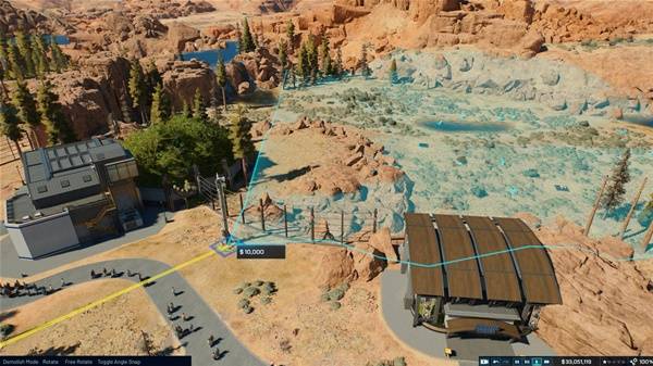 使用地形工具移动山脉,为恐龙围栏营建自然边界。水体笔刷不仅可以轻松创建瀑布,也是在公园各处营造出有趣景观的利器,还能为陆生恐龙的栖息地划出边界。