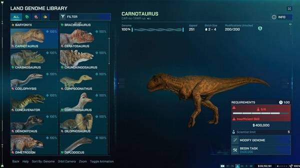 可供游客观赏的恐龙越多,你的公园就越受欢迎。派遣科学家开启探勘任务,去发现更多 DNA 并建立起遗传基因组收藏库。不论是要合成雄性恐龙还是雌性恐龙,首要任务都是为各物种发现足够的遗传基因组。