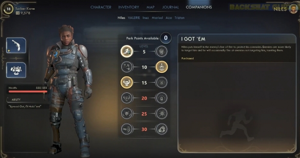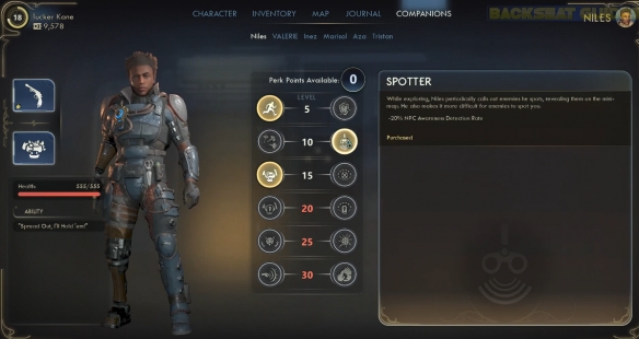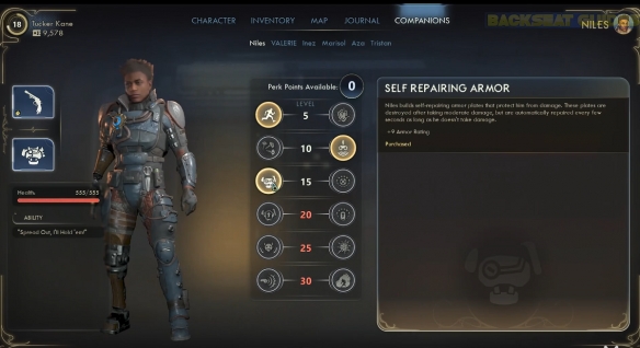 Field Tinkering:奈尔斯是一个移动的工作台,让你可以随时随地升级同伴和装备。