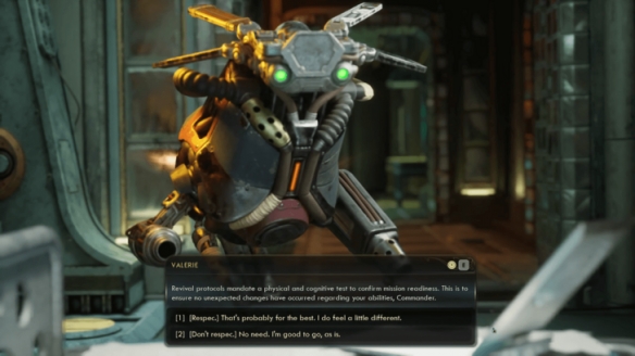 当你从长达十年的休眠中醒来,机器人同伴瓦莱丽会立即与你交谈。她不仅会向你介绍过去十年发生的事,还会为你提供一个极其重要的机会——重新选择你的角色特质和技能。