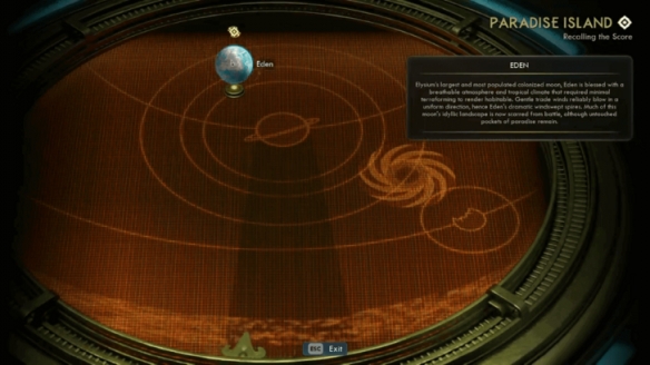 选择伊甸星:与奈尔斯交谈后,使用飞船上的星际导航计算机,选择目的地伊甸星上的天堂岛。