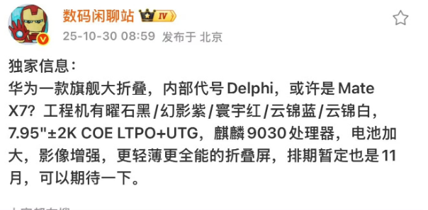 华为Mate系列再添轻薄新旗舰!Mate70Air核心配置确认,搭载Pro版同款等深四曲屏,搭配1.5K分辨率与高刷新率,握持感与视觉体验双优。性能上最高配备1