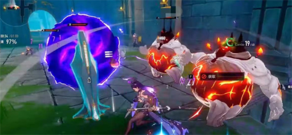 但丁承担主要AOE输出,在释放技能后能清理大范围敌人,快速削减整体血量。榛子则在后排进行持续输出与补刀收割,整体节奏紧凑,适合高强度推图与精英战。